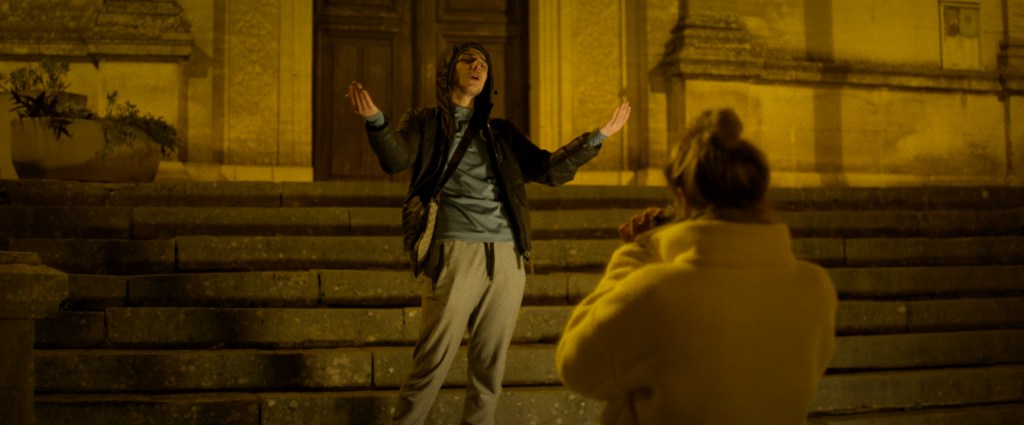 Le film s’ouvre sur une story instagram du « vrai gars » du titre, Sami. Jeune rappeur plein d’ambition, il promet à sa communauté un nouveau son. La tragédie minimaliste qui suit donne à découvrir le hors-champ de ce prologue. Dans un village du sud de la France, à la nuit tombée, Sami s’apprête à tourner un nouveau clip avec sa copine, mais rien ne se passe comme prévu. On pourrait même dire que rien ne se passe : le tournage du clip est avorté, l’altercation avec Julie interrompue, la bagarre avec un villageois évitée de justesse… Vrai gars se construit sur du vide. Pour saisir la solitude de son personnage, le réalisateur use de plans rapprochés pour arpenter avec lui les rues baignées dans la lumière jaune des lampadaires. Dans les plans larges sur la place de l’église ou devant la Casa del Sol, il paraît écrasé par ses rêves, trop grands pour se déployer dans ce village où il se sent à l’étroit. Dans les rues de son village, Sami suit des codes de masculinité qu’on lui a inculqués, sans vraiment y adhérer. Entre deux morceaux, on découvre un adolescent qui peine à s’exprimer autrement que par ses poings et par ses textes. Une tragédie contemporaine et minimaliste à laquelle il est difficile de rester insensible. – Claire Massot et Alma Meillassoux