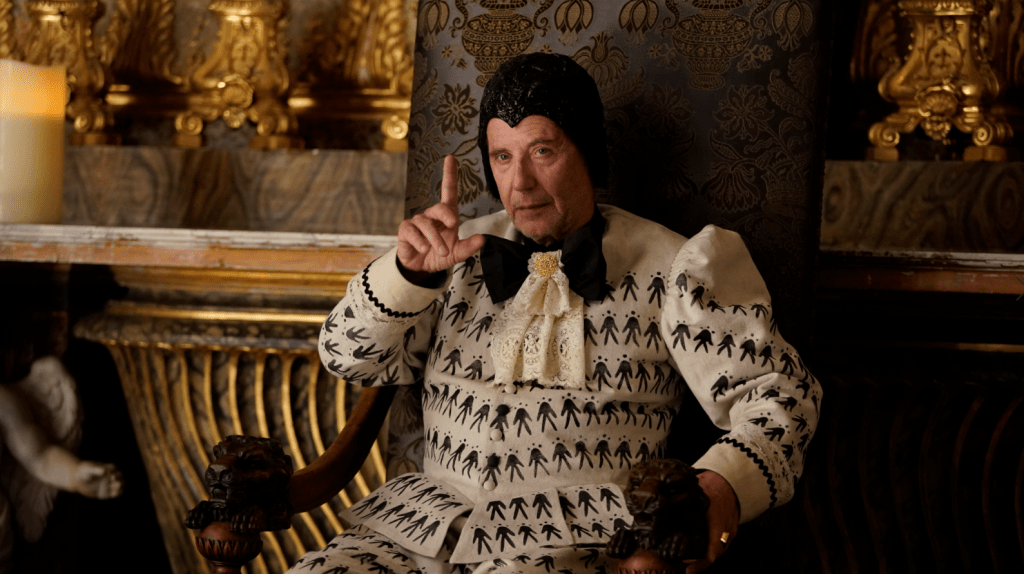 De ce pur délire d’esthète, le long-métrage en jouit régulièrement dans sa première partie. Avec une absurdité plaisante, le cinéaste impose un subtil renouvellement des formes récurrentes de son cinéma. Les cathédrales y deviennent vaisseaux-mères, les hommes d’Église mutent en tyrans intergalactiques et les chevaliers cosmiques se cachent sous les traits de banals civils. Inversement, l’économie naturaliste de Dumont contamine peu à peu la profusion du space-opera. Lorsque l’Empereur Belzébuth se pavane dans son vaisseau désert ou que des comédiens locaux déclament leur éminent combat contre le bien, L’Empire renoue avec un esprit bon-enfant et donne le sentiment grisant d’un pastiche récréatif.