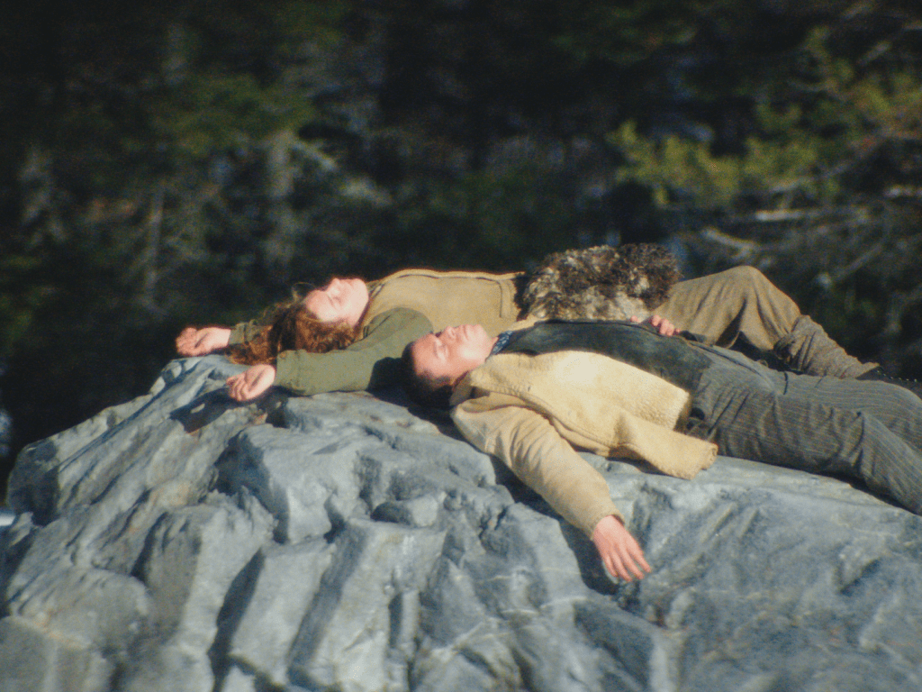 Cette hétérogénéité des sources de la narration, ce tiraillement entre deux opposés, est aussi à l’origine de la sensualité qui déborde du film. Éclairé à la bougie, ou au naturel pour les extérieurs, le magnifique petit imagier – merveilleux clair-obscur en 1:33 composé par la chef opératrice Marine Atlan (Les Reines du drame, Nos Cérémonies, Le Ravissement) – orchestre la rencontre simple et bouleversante de la lumière et des corps. Les personnages s’y ressourcent, se rechargent au soleil en énergie érotique avant d’aller consommer l’interdit dans l’obscurité d’une grotte, se dénudent devant l’âtre pour mêler leurs chairs dans la pénombre, et le désir fait crépiter la surface de la pellicule comme des braises ardentes. Une alchimie très particulière grâce à laquelle cette fiction trouve sa singularité dans la paysage du cinéma français : dans la blancheur immaculée des montagnes éternelles, sa sempiternelle partition de la rencontre entre deux milieux hermétiques l’un à l’autre est joyeusement envoyée au feu, pour alimenter un sortilège délicieusement trouble qui n’en finit plus de faire tourner la tête.